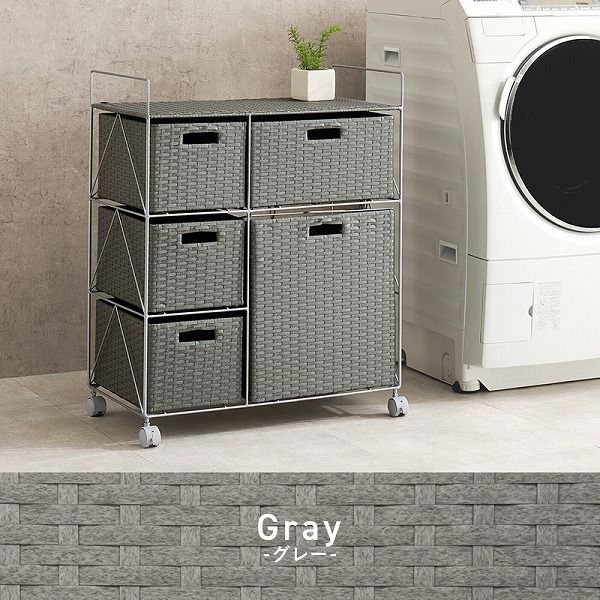 幅65 ラタン調ランドリーチェスト SMOOTH ワゴン RAN-2458 脱衣所 収納 洗面台収納 かご 棚 シンプル ランドリー ラック ラタン調 チェスト キャスター ランドリーチェスト 軽量 洗面所 防水 大容量 サニタリー 白 ブラウン