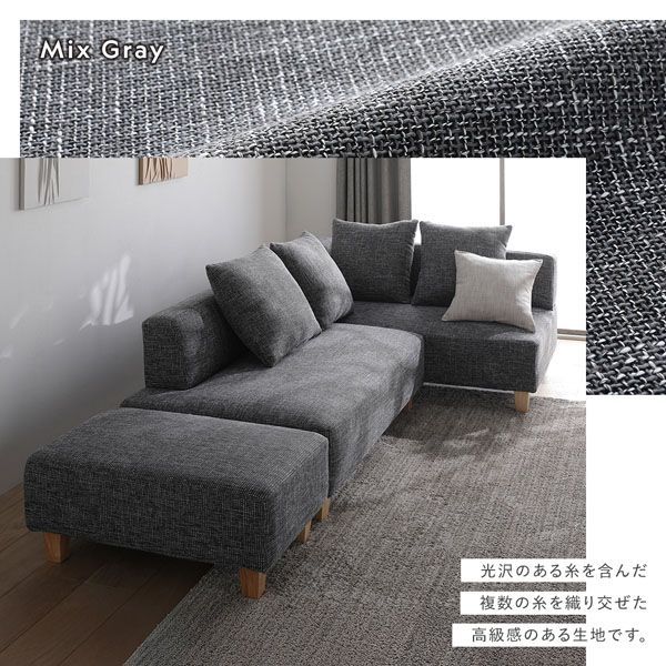 ※こちらは『2人掛け+カウチソファ(木脚)』の販売ページになります。オットマンは付属しません。