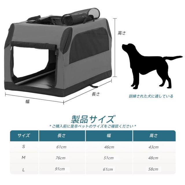 【商品仕様・中小型犬猫適用】本体サイズ(幅X奥行X高さ):76*51*48cm。中小型犬猫に適用し、SUV、トラックなどの自動車に対応します。
