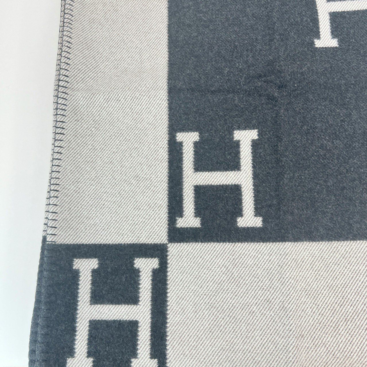 Hermès エルメス Jeté de canapé Avalon プレード アヴァロン メリノウール 90 カシミヤ 10 Ecru gris fonce エクリュ グリフォンセ