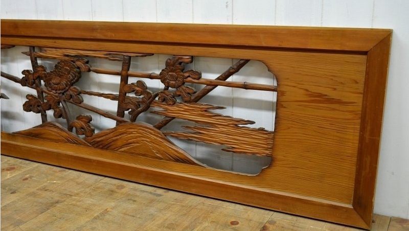 蔵C 1131 建具 欄間 一対 菊図 彫刻 座敷古民家