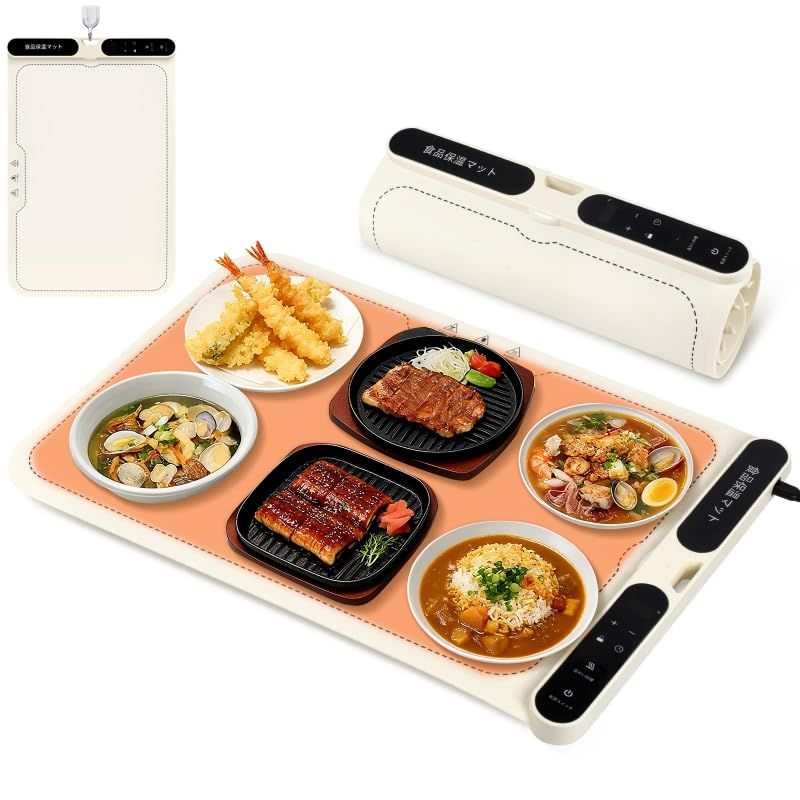 食品保温プレート フードウォーマー 7段階温度調節 40-100℃ 8段階タイマー設定 巻き取り式収納 やけど防止デザイン ナノシリコーン素材 解凍 ホットドリンク テーブル用 1