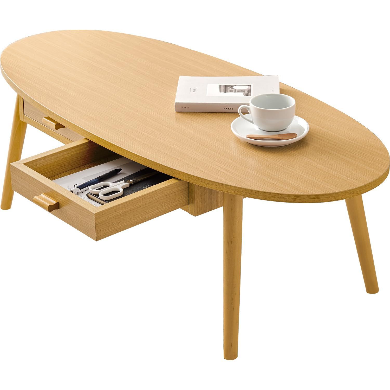 萩原 テーブル ローテーブル 収納付き センターテーブル 楕円形 【便利な 両面 引き出し】引き出し付き 幅 110 奥行 48 高さ 37 ナチュラル MT-6381NA