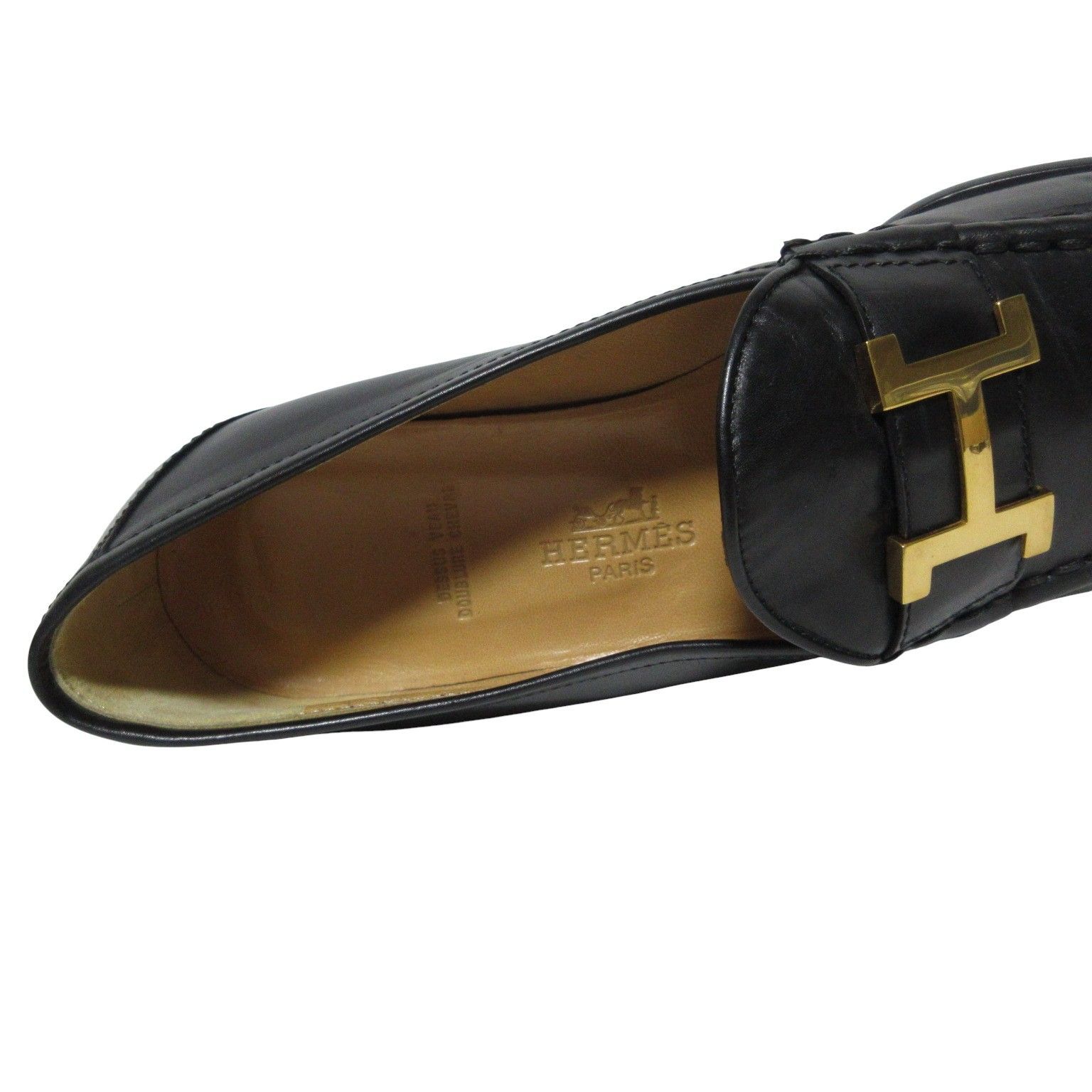 エルメス黒モカシンHローファー36.5約23.5前後