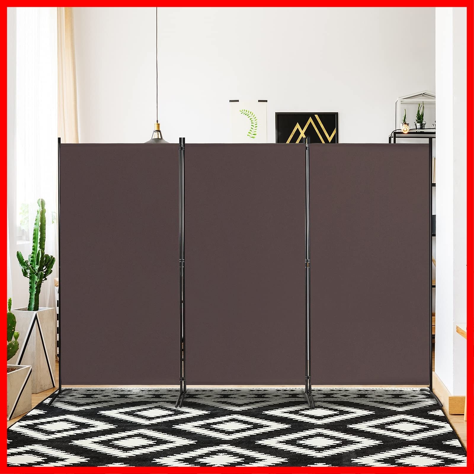 Costway パーテーション 間仕切り 3連 高さ183cm 幅260cm 布タイプ 目隠し スクリーン 屏風 折りたたみ 衝立 おしゃれ 軽量 コンパクト収納 オフィス 事務所 クリニック (3連-ブラウン)