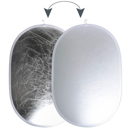 人物撮影に最適なジャンボサイズのレフ板。銀色と白色のリバーシブル仕様。