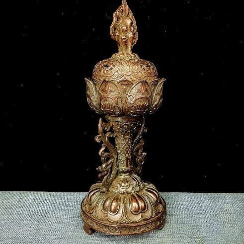 チベット式ネパール擬古紫銅色 純銅香薫炉供養法器香炉置物装飾WP 入荷