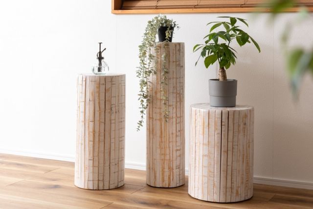 ひとつひとつ表情の違う丸太型のグリーンベース。ホワイトカラーのナチュラルな雰囲気がグリーンを際立たせます。