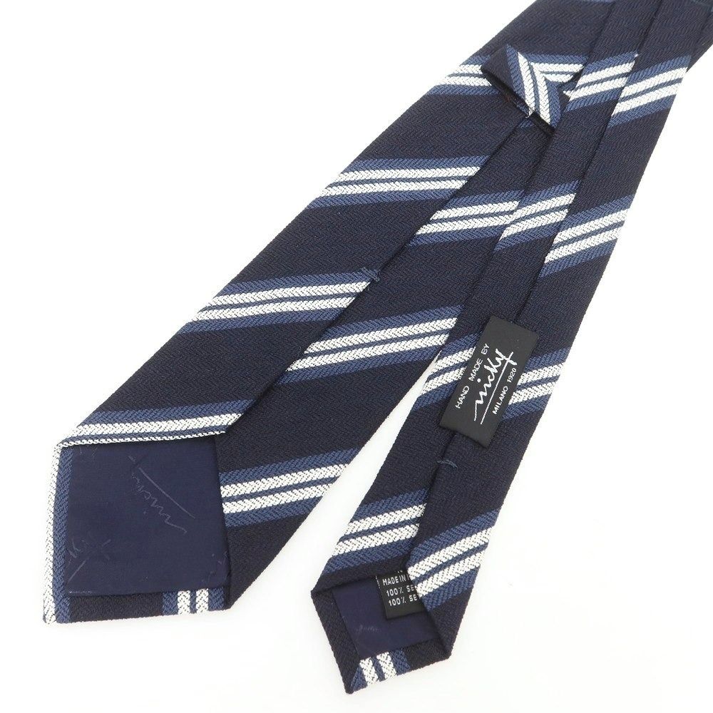ニッキー nicky シルク ストライプ柄ネクタイ ダークネイビーxホワイト メンズ