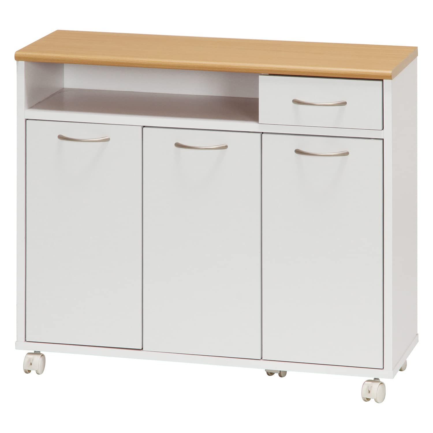 不二貿易(Fujiboeki) キッチンカウンター キッチン収納 幅80×奥行29×高さ70cm ホワイト×ナチュラル 食器棚 キャスター付き 引き出し収納 木目調 86927
