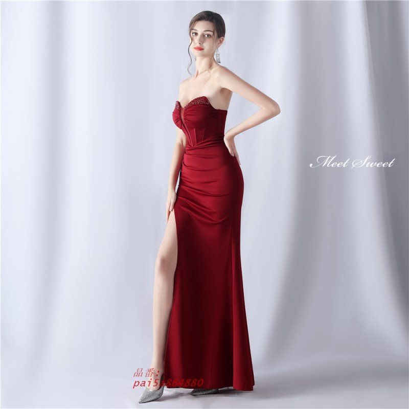 ドレス マーメイドドレス パーティードレス サテン スリット イブニングドレス ウエディングドレス ウェディングドレス フォーマルドレス 発表会 pai 5 a 864880