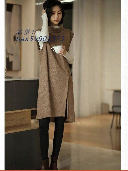 上質素材大人かっこいいイレギュラージャンバースカート ニット トップス スリット ブラウン オフタートル 20代30代40代50代60代 hax 5 v 901373