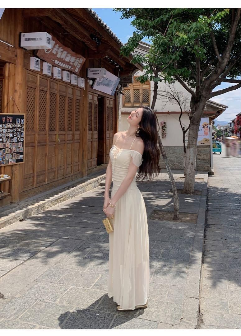 春のスクエアネックスカートモテ服ロングワンピ上品セクシー高見えアイテム