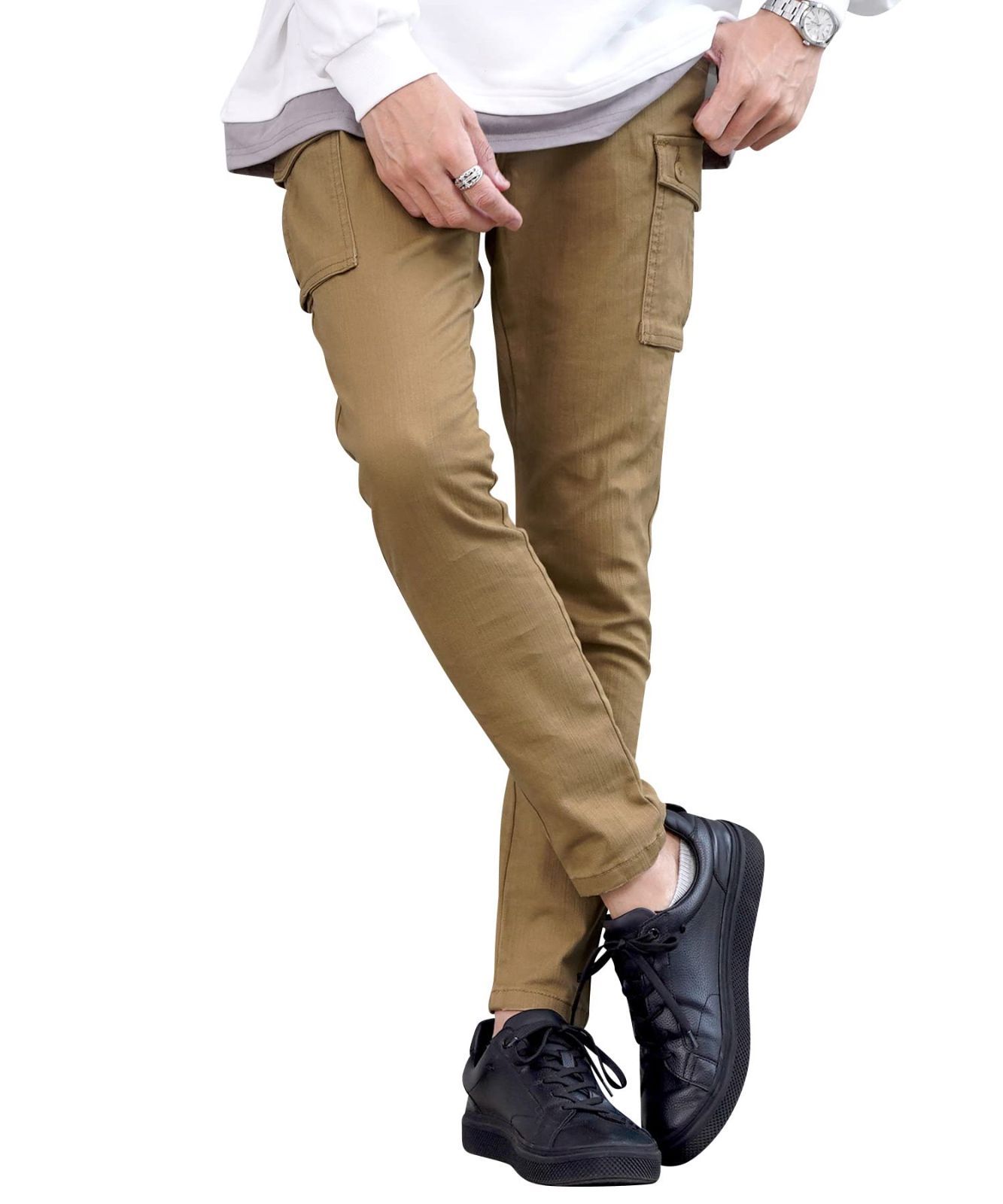 XL_ベージュ [JIGGYS SHOP] ジギーズショップ ストレッチスリムカーゴパンツ XL ベージュ|メンズ ボトムス スキニー ワークパンツ スリムパンツ 伸縮性 ストレッチ 無地 細身 春服 秋服 黒 白