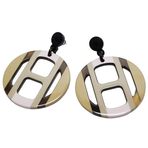 エルメス HERMES バッファローホーン ピアス Hエキップ Faubourg Pastel ベージュ ブラウン ライトピンク