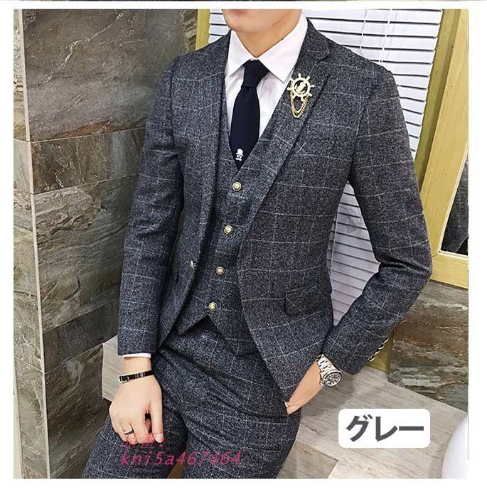 メンズスーツ スーツ スリム ストレッチ フォーマル 1つボタン 3 XL 2 S グレー ワインレッド ビジネススーツ M L 3点セット kni 5 a 467464