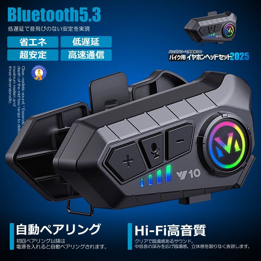 バイク ヘッドセット セット 高音質 イヤホン Bluetooth 5.3搭載 ヘルメット装着 ハンズフリー スマホ 音楽 電話 通話 Hi-Fi高音質 IPX 67 防水 防塵 Y 10-SOFT 宅配ヤ