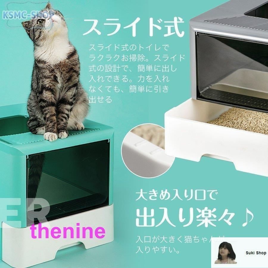 猫 トイレ システム スライド式 大型 おしゃれ メガトレー ネコ カバー 猫用 猫砂 防臭 猫トイレ ネコトイレ 収納 持ち運び 蓋付