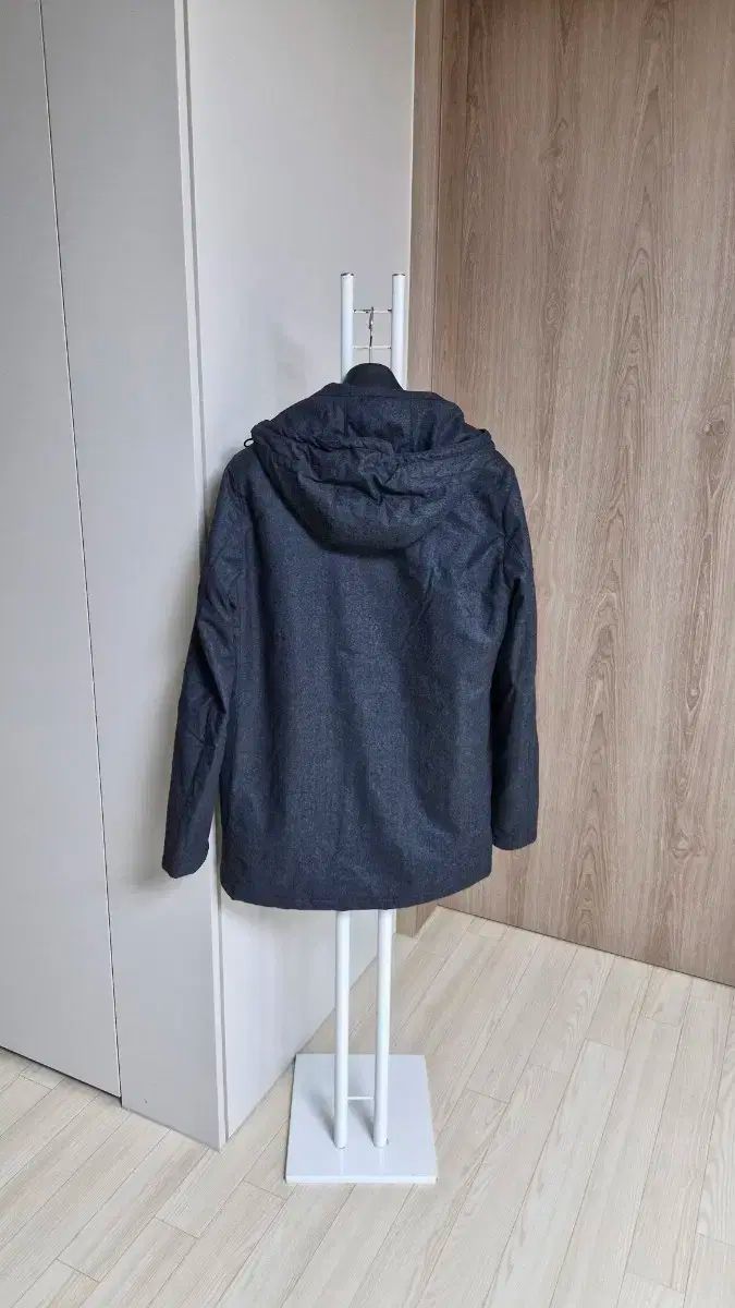 チャコールグレーで、95サイズ、スリムに仕立てられています。ジップアップスタイルなので楽に着ることができます。