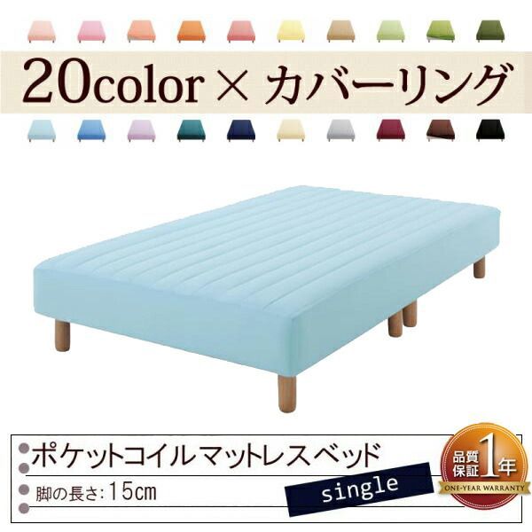 色 寝心地が選べる! カバーリングポケットコイルマットレスベッド 脚15 cm シングル パウダーブルー