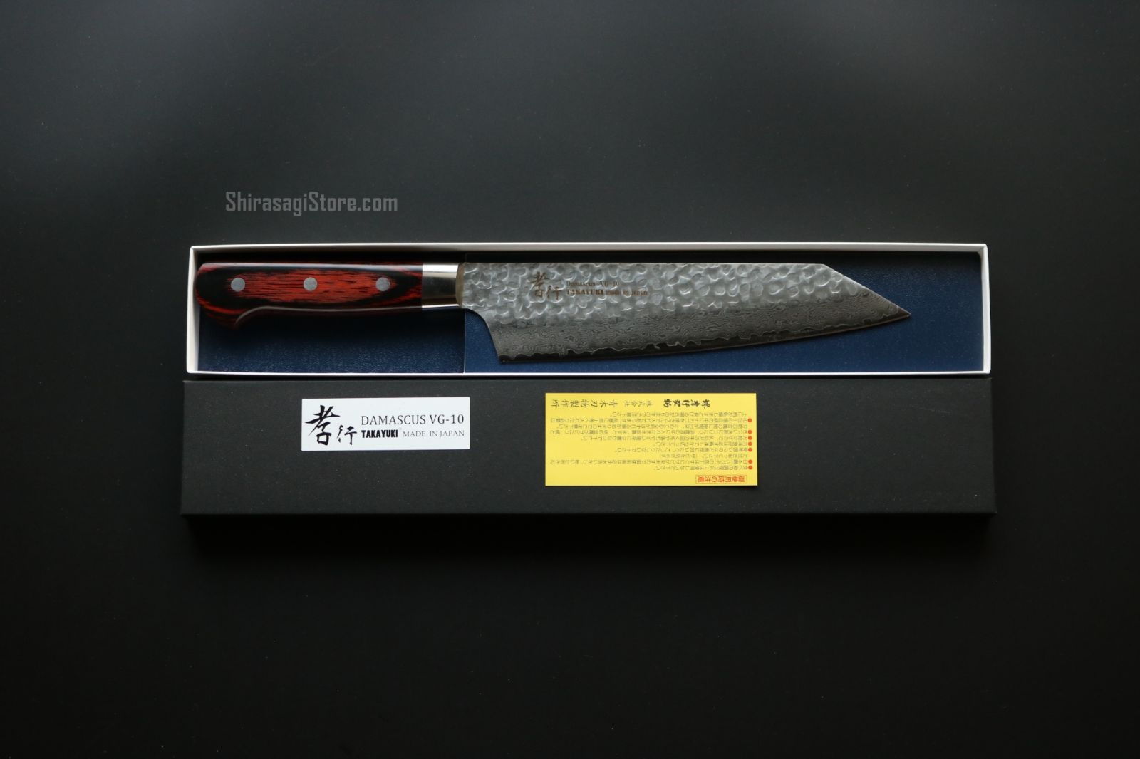 ■特徴:切れ味鋭くサビに強いVG-10を芯材に使用した高性能ナイフです。ブレードに槌目模様をデザインしており日本古来の鍛造包丁を連想させる作りになっています。