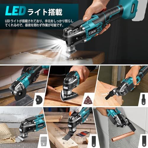 【本体のみ&マキタ 18V バッテリー対応】お客様から「すでにバッテリーがある」とよくお聞きしました。そこで、電動マルチツールの本体が登場します。弊社 Elikliv のバッテリーはもちろん、マキタバッテリーの BL1820b、BL1830b、BL1840b、BL1850b、BL1860b にも対応しています。コードレス式なので、使用場所を選ばず、作業中に線を引っかける心配もありません。屋根の腐敗を修復するために木や釘を切断しようとするとき、手の届きにくい場所でも最適です。