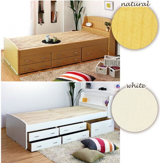 大小5杯のアンダー引出が充実の収納ベッド。床板は通気性に優れた桐すのこ仕様。安心の日本製で末永くご使用いただけます。