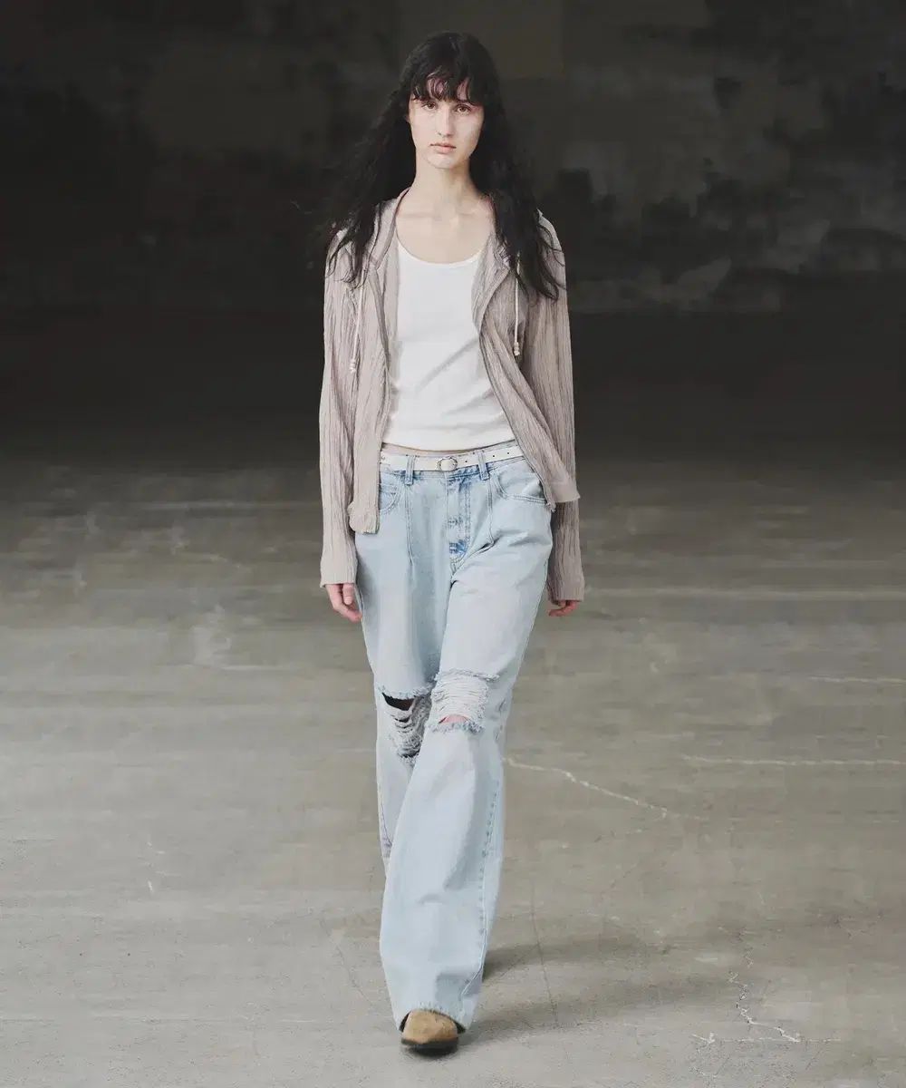 INSILENCE インサイレンス ウーマンズ ナチュラル クリンクル ジップアップパーカー フード付き アッシュ ベージュ