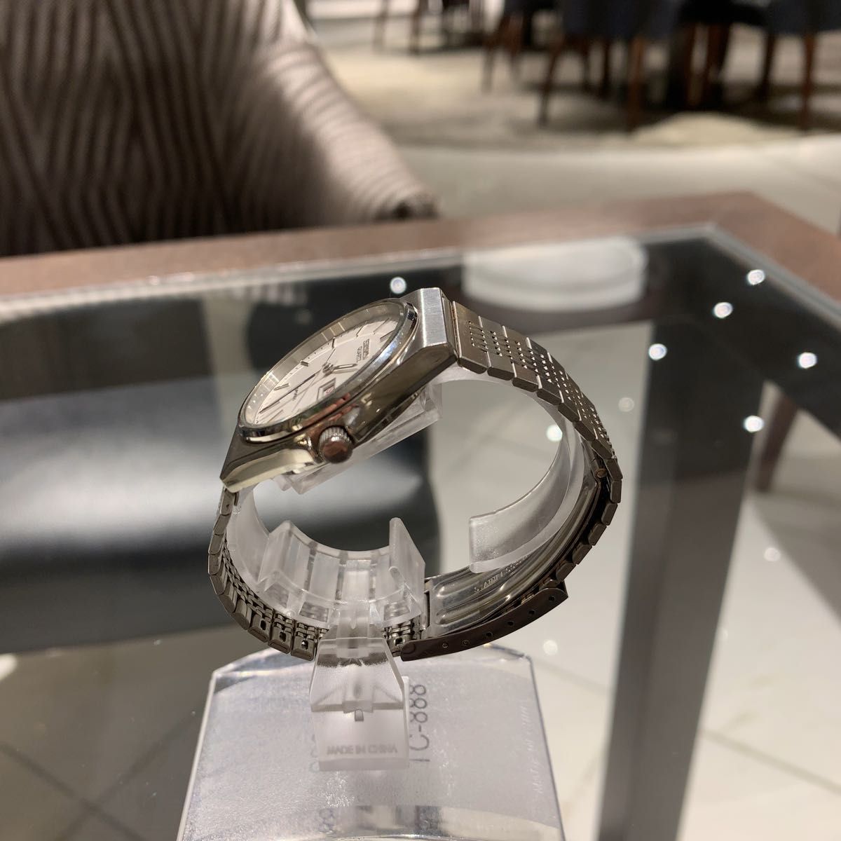 シルバーとホワイト文字盤のツートーンカラーで、カジュアルにもフォーマルにも合わせやすいデザインです。