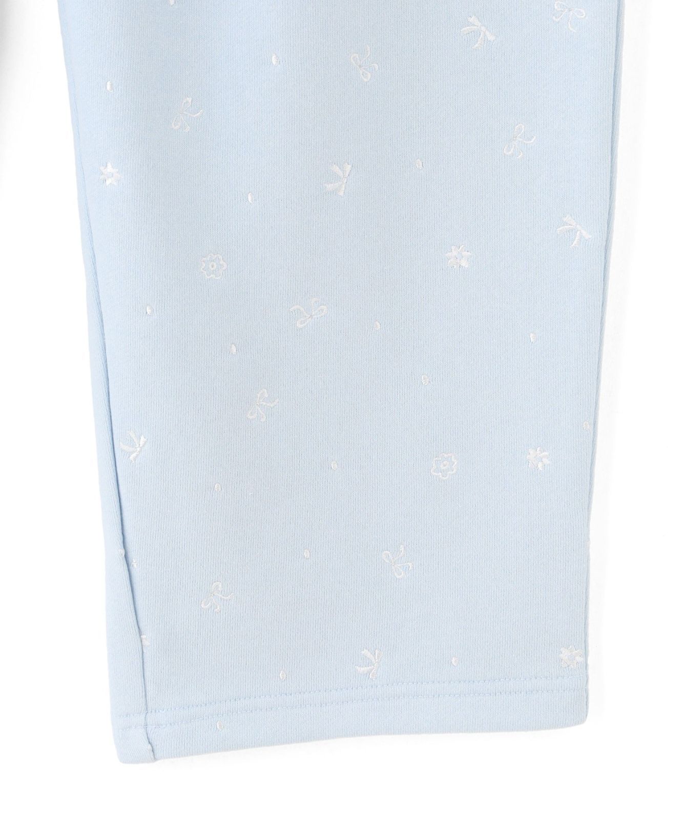 同系色の総柄刺繍は、オリジナルパターンのお花とリボンのモチーフになっています。