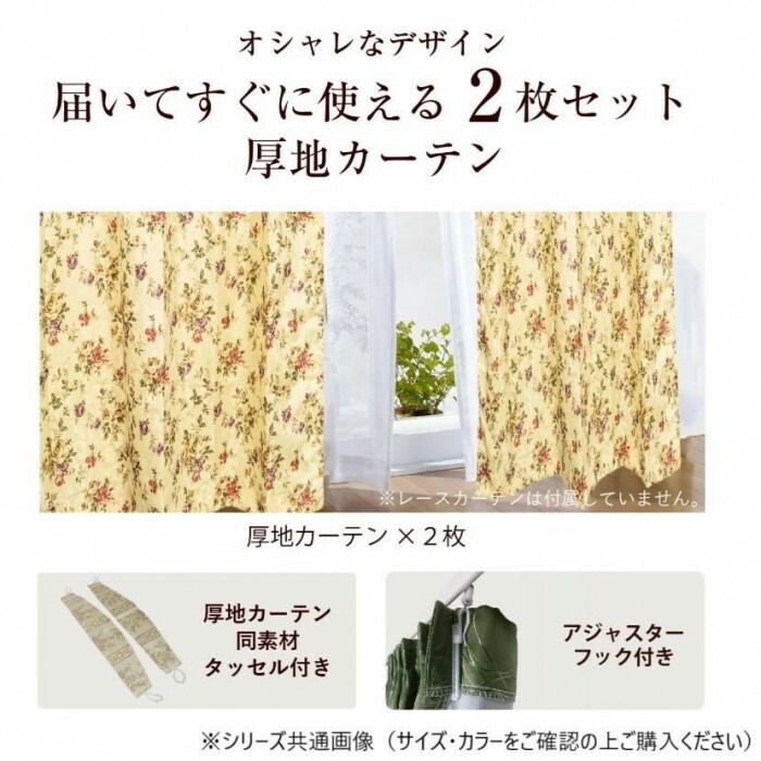 セット内容:厚地カーテン2枚・厚地カーテン同素材タッセル・アジャスターフック