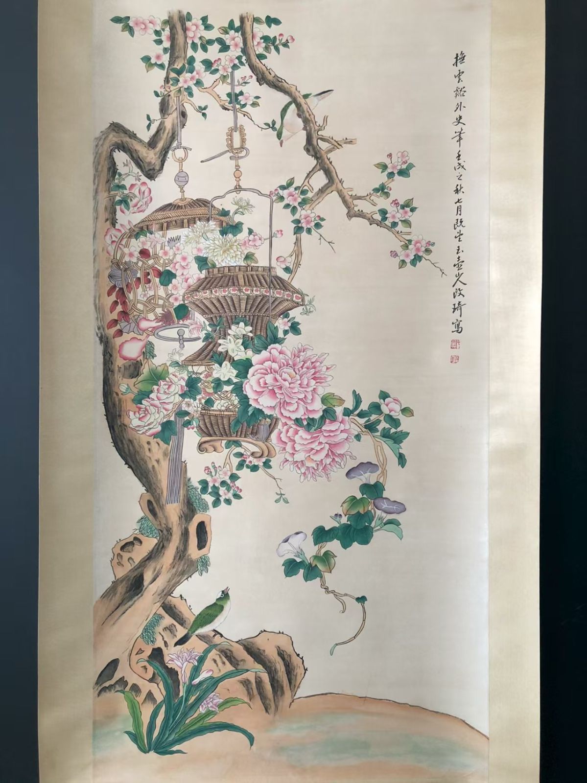 中国古美術.花鳥画.4尺純手描き作品.観賞品.文房置物.中国骨董