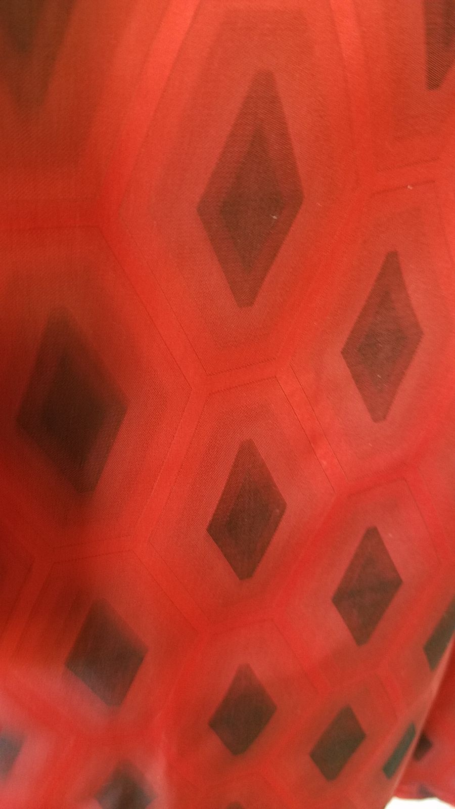 黒地の亀甲柄の大島と赤の