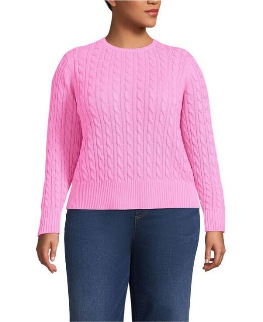 ランズエンド レディース ニット セーター アウター Women s Plus Size Drifter Modern Cable Crew Sweater Aster pink