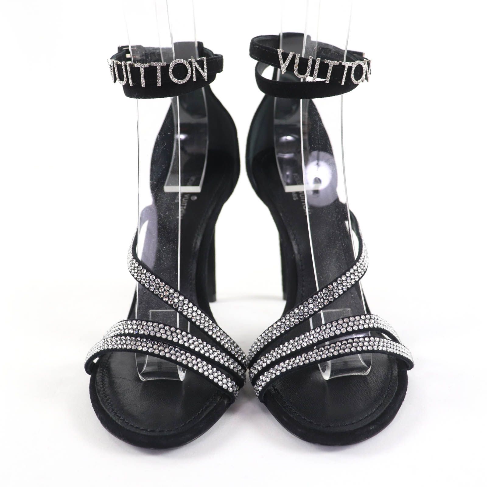 LOUIS VUITTON ルイヴィトン ラインストーン付 アンクルストラップ スウェードレザー サンダル ブラック 36.5 イタリア製 レディース