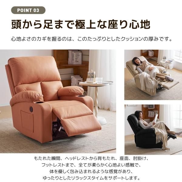 リクライニングチェア ドリンクホルダー付き 1人掛け スマホ充電可 リクライニング ファブリック オットマン一体型 パーソナルチェアー ソファ 敬老の日 爆買