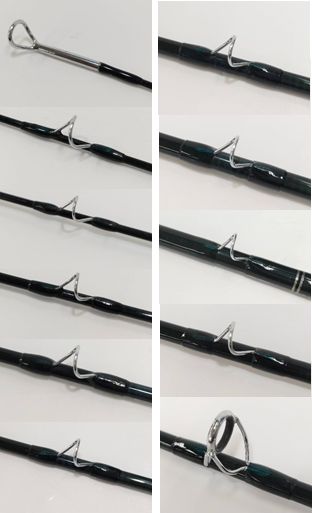 深いグリーンのブランクに透明感のある同色スレッドで巻き上げられた美しいロッドです。