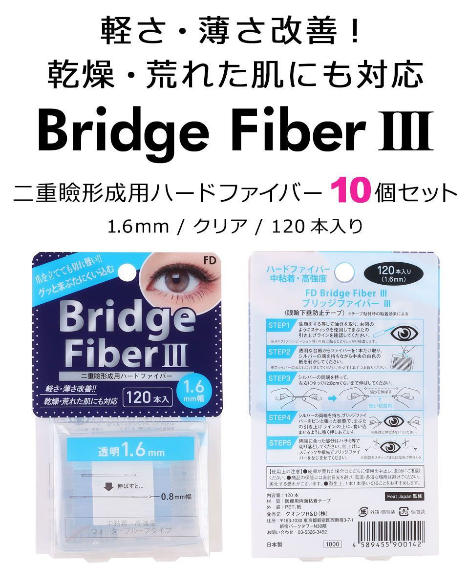 セット 二重テープ アイテープ 二重まぶたテープ クセ付け FD ブリッジハードファイバー3 ハードタイプ 透明 1.6 mm 120本入り ウォータープルーフ 二重ファイバー 形成 ふたえ まぶた シール 眼瞼 下垂 防止 引き上げ y 2