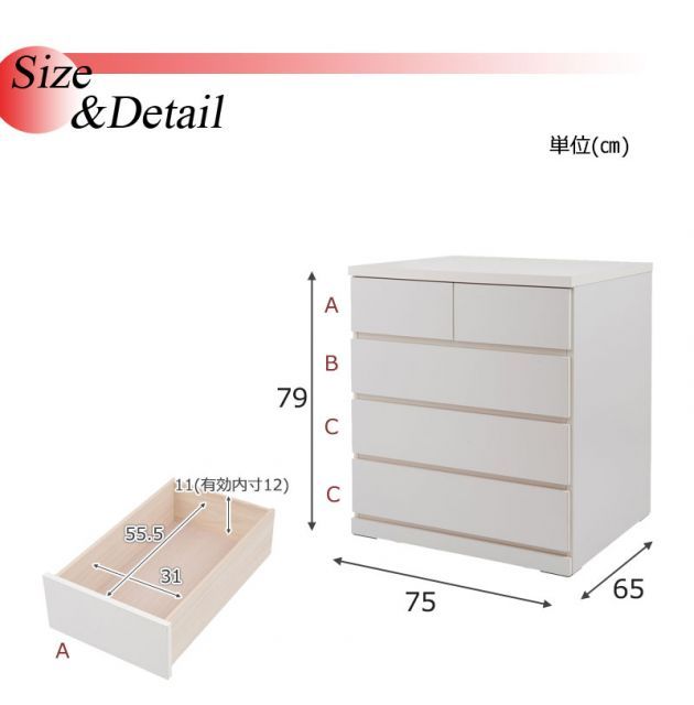 ■引出し内寸/(約)幅31×奥行55.5×深さ11(有効内寸12)cm、(約)幅65.5×奥行55.5×深さ9.5(有効内寸11)cm、(約)幅65.5×奥行55.5×深さ13(有効内寸14)cm
