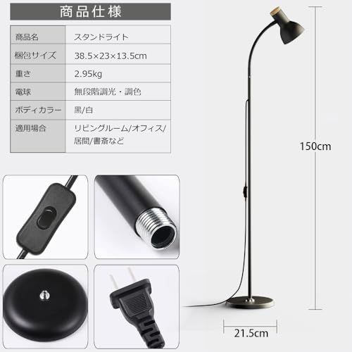 【無段階調光・調色&柔軟なネック】このフロアライトは2700K-6500K色温度と10%-100%の明るさが調節可能で、お気に入りの光を設定できます。また、ライトの最上は360回転可能により、お好みな角度が自由に調整でき、照らしたい所に明かりが届き、全方向照明を実現します。