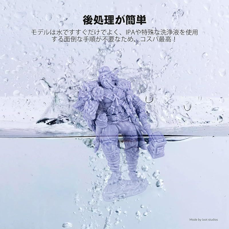 【水洗い可能、効率的で時間節約】 モデルの後処理にIPAを使用する必要がなく、出力したモデルを水洗いして硬化させるだけで済みます。3D 印刷後処理の効率が向上します。 操作は簡単で便利で、コストパフォーマンスも優れています。