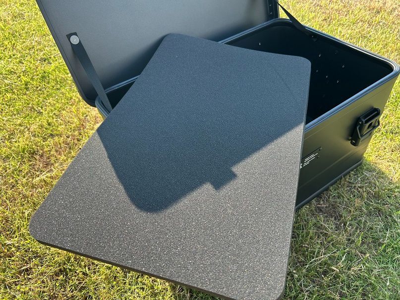 今回のコンテナボックスには1.5cmのクッション材の中敷きを標準セットになっております。