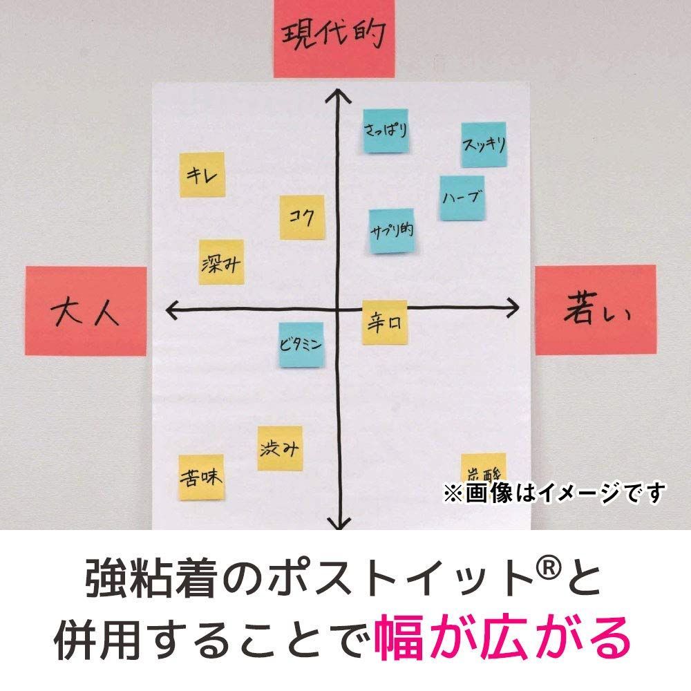 ・どこにでも持ち込んですぐに書き込める。壁やクロス、ボードに長時間貼ることができ、下地を傷めずきれいにはがせる。