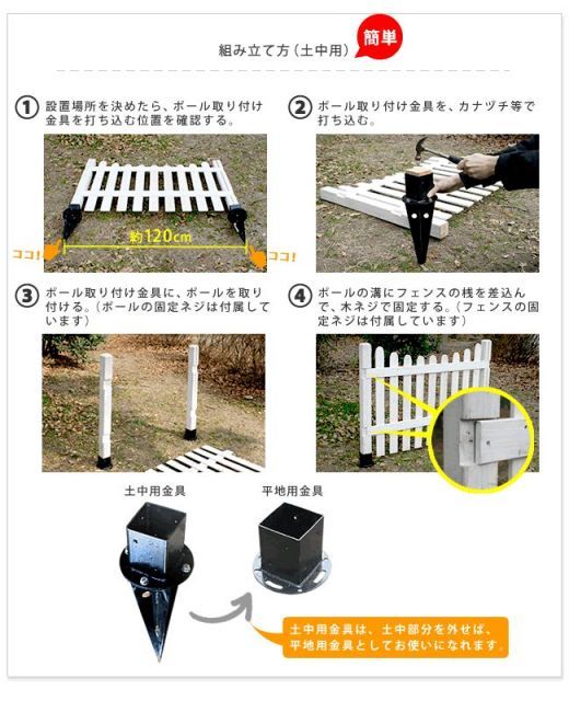 土中用金具:幅約140×奥行約140×高さ約460mm■重量フェンス:約3.4kg