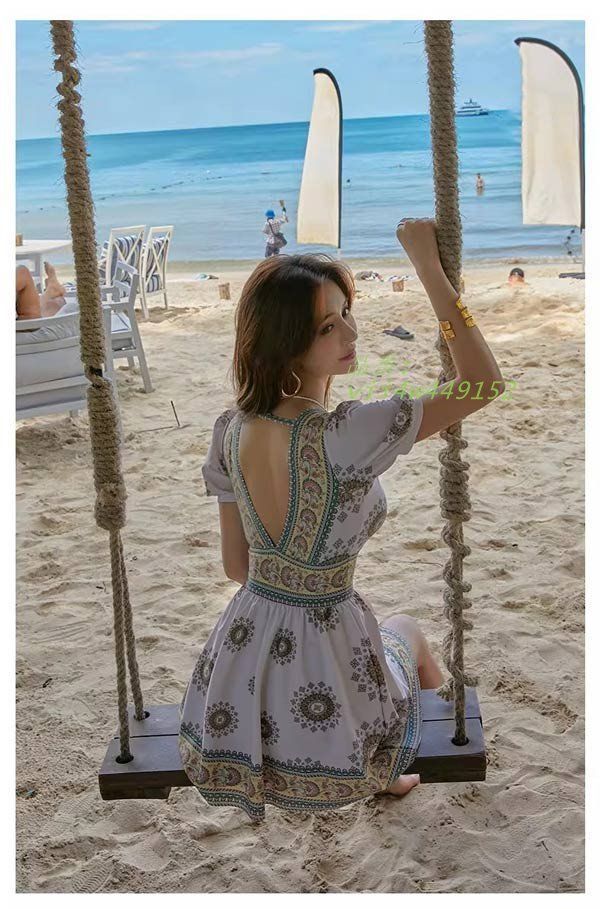ワンピース水着 エスニック Vネック 服みたいな 水着 半袖 写真映え L 着痩せ 撮影用 夏マルチM レディース 海 セクシー パッド付 XL レトロ風 vii 4 w 449152