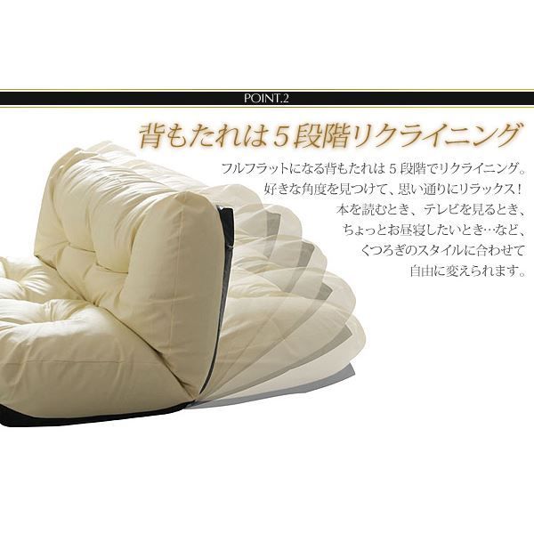 フルフラットになる背もたれは5段階でリクライニング。好きな角度を見つけて、思い通りにリラックス!本を読むとき、テレビを見るとき、ちょっとお昼寝したいとき・・・など、くつろぎのスタイルに合わせて自由に変えられます。