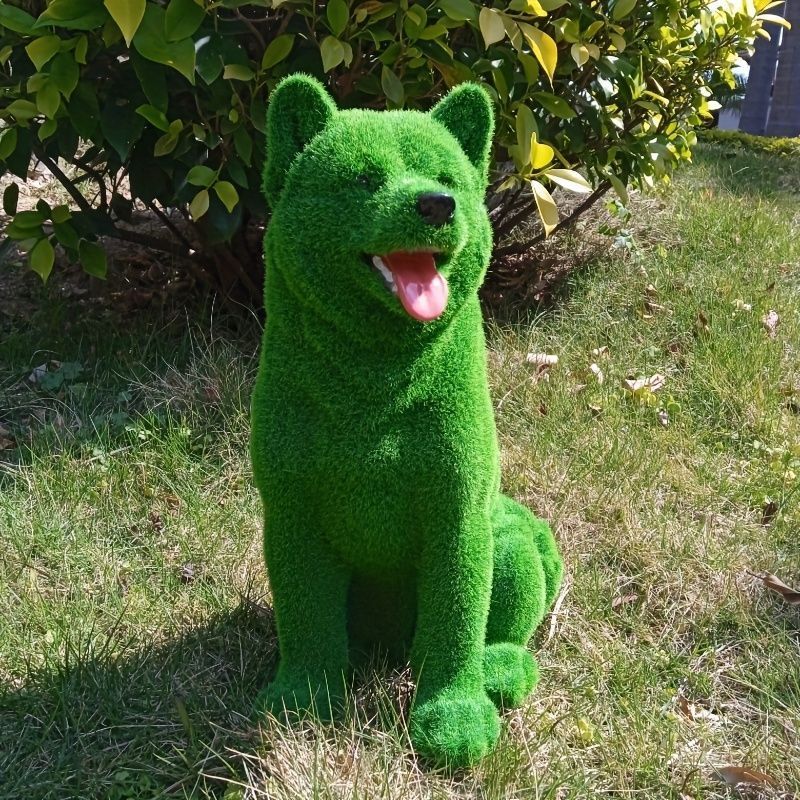 まるで芝生から飛び出したような、ふわもこグリーンの犬オブジェ。