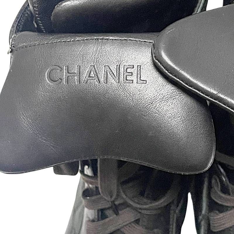 CHANEL シャネル スポーツライン スノーブーツ 37 23.5-24 cm レザー キルト ココマーク ブラック系 OJ 10-2
