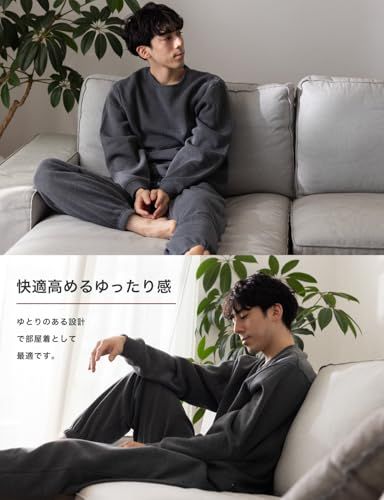 Nutopia スウェット 裏起毛 パジャマ メンズ 上下セット 秋冬 ルームウェア ゆったりシルエット 男女兼用 ペアパジャマ 部屋着 セットアップ 防寒 柔らか 裏フリース チャコール ライトグレー 1 P 2 3 Pe