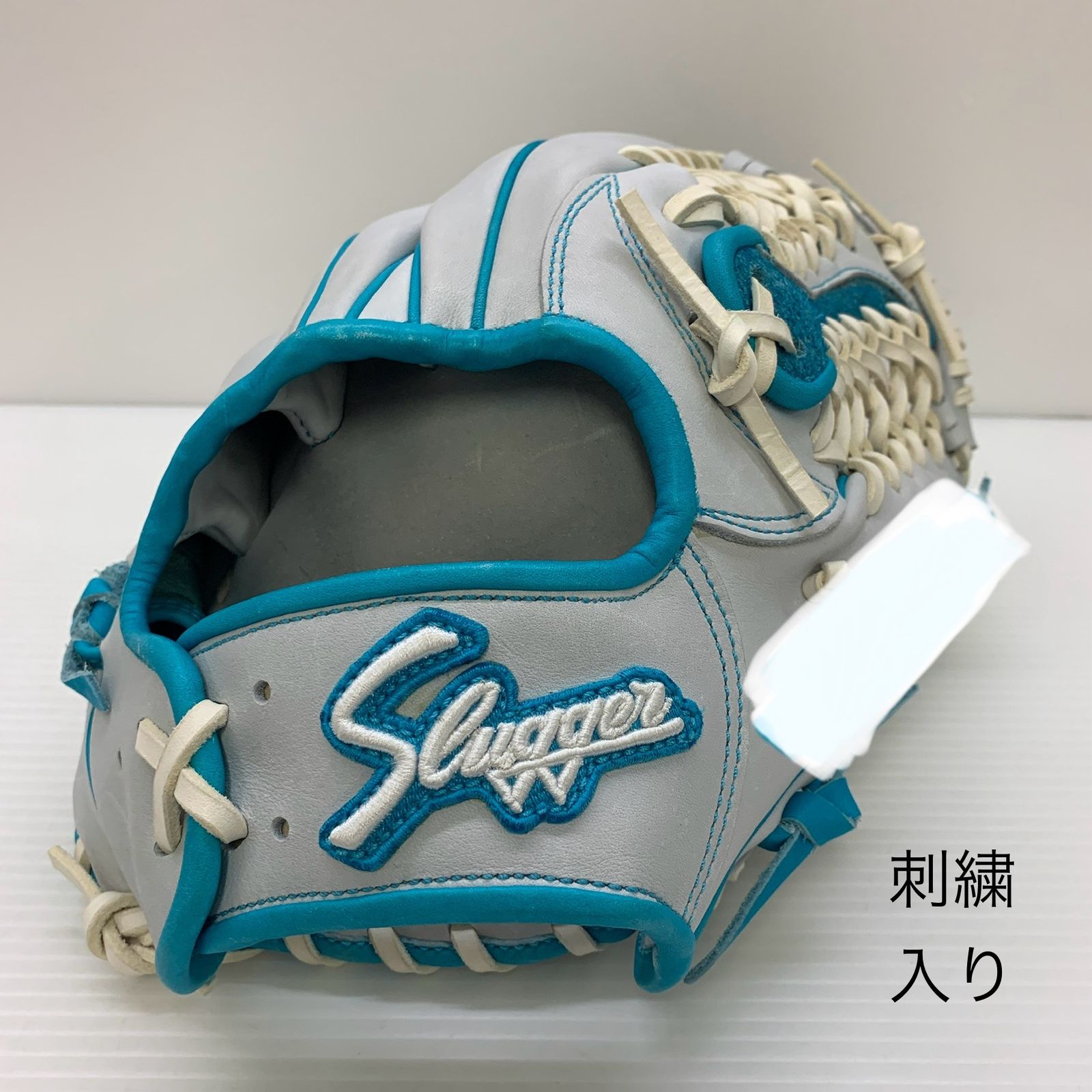 ■備考:新品で使用感がある商品です。傷、色あせ、汚れ等がある場合がございますが、破れや穴あきは見受けられません。詳しい状態は画像にてご確認ください。見落としの傷や汚れ等がある場合がございます。ご了承の上ご購入下さい。型はついていませんが、柔らかくなっています。捕球面にグリスが滲み出ています。刺繍が入っています。刺繍の詳細は個人情報になります。お問い合わせをいただいても、詳しい刺繍の内容につきましてはお答えできません。予め了承下さい。